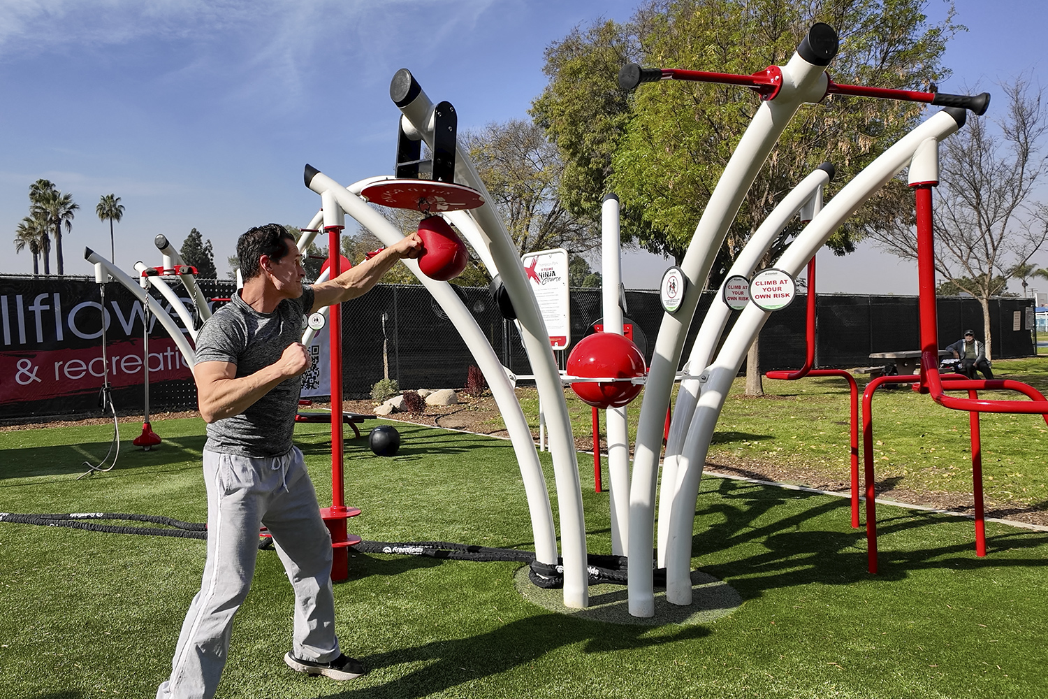 Greenfields Outdoor Fitness introduces the NEW Ninja Training Ground, the perfect complement to our Ninja Courses. It’s the go-to place for ninjas to warm up, and for the rest of the community to enjoy a great functional fitness workout! The Ninja Training Ground’s 13 features include highly versatile elements such as adjustable suspension trainers, parallel bars, and a sit-up bench.